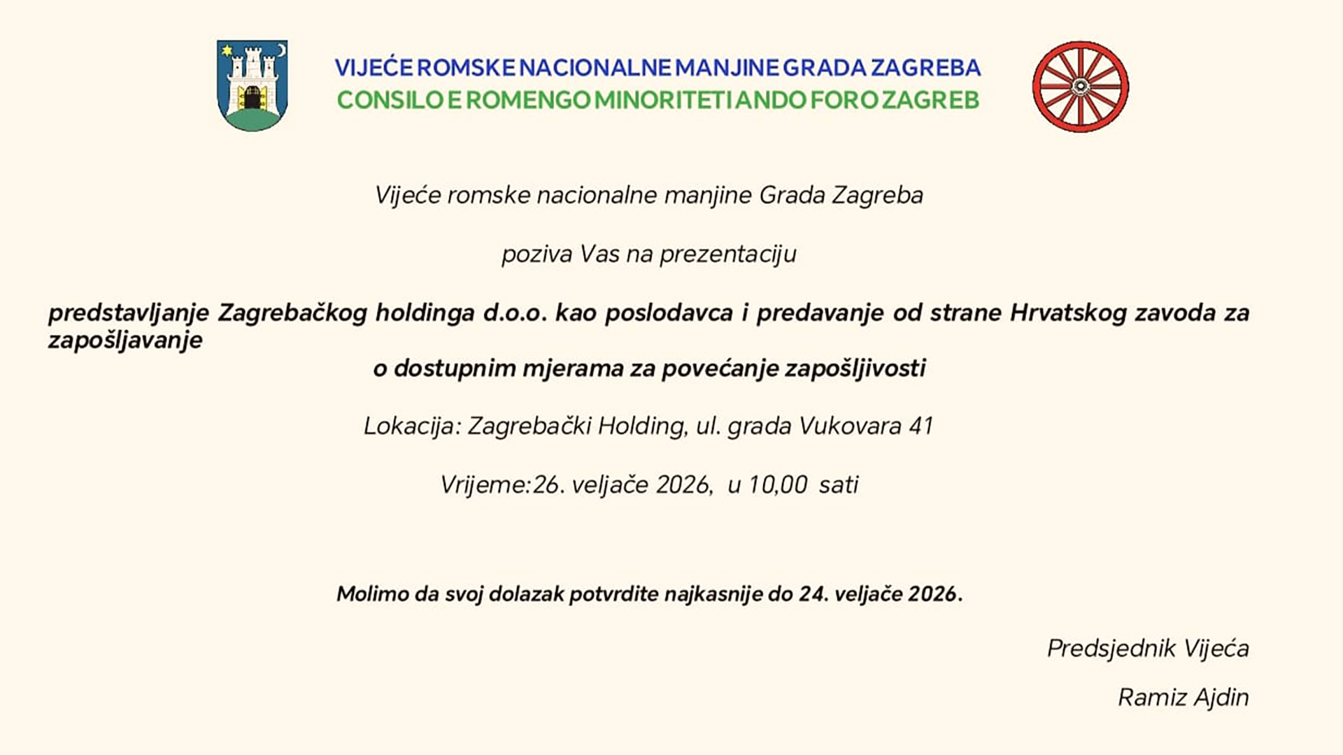 Molimo da potvrdite svoj dolazak do 24.2.2026.